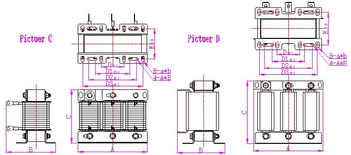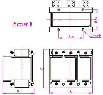 產品型號 | 繞組材質 | 電流 | 電壓 | 電壓降 | 適配變頻器功率 | 圖號 | A | B | C | D3 | E |