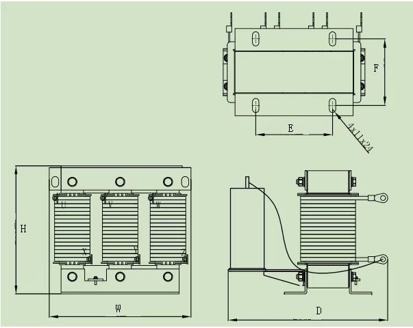 產(chǎn)品型號(hào) 額定電流 電感量壓 降適配變頻器功率WD H   E   F