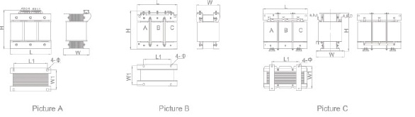 產品型號額定容量(KVA) LWH安裝孔4-Φ絕緣等級
